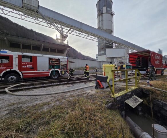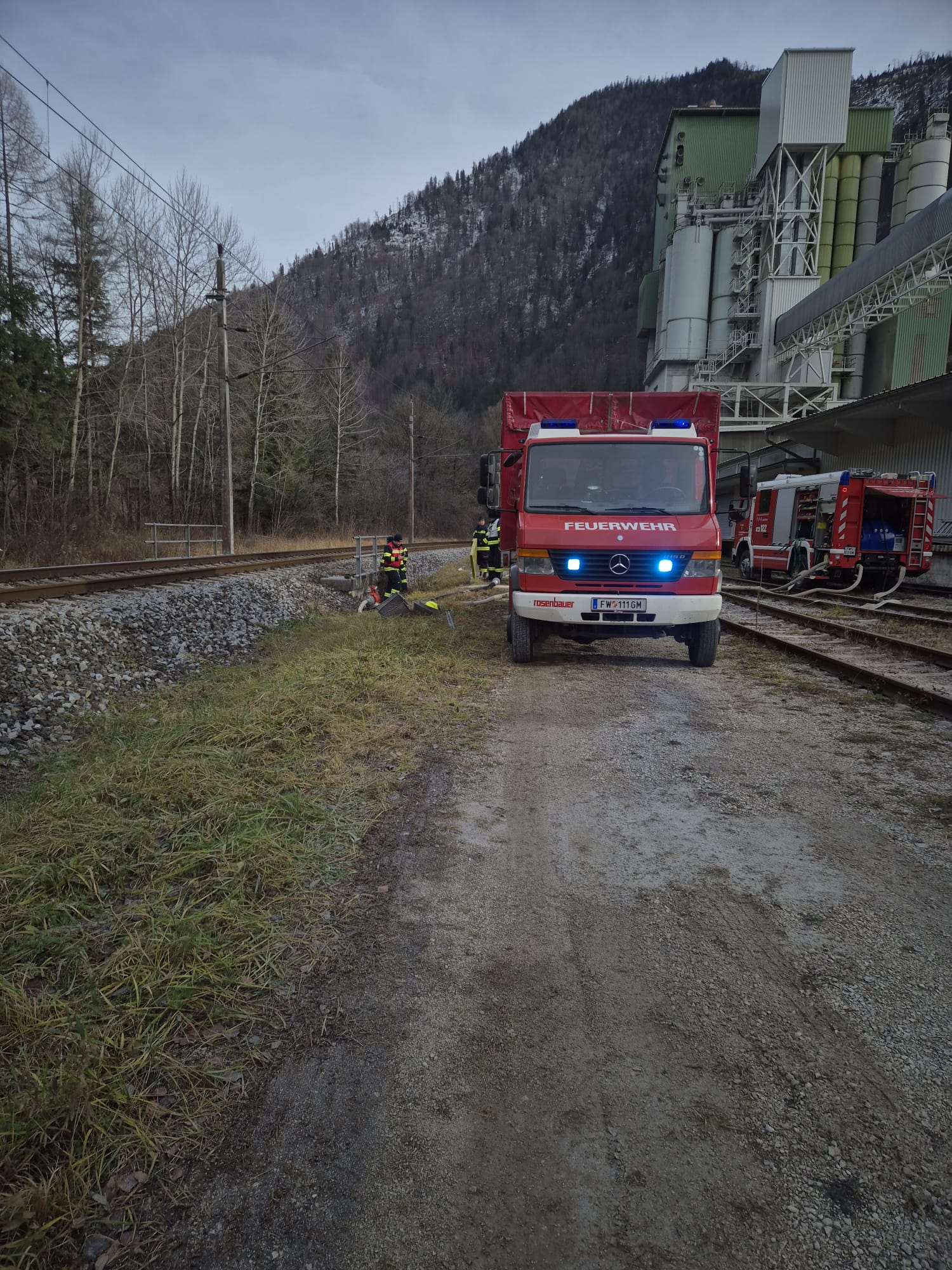 Im Rahmen des Großeinsatzes in der Bad Ischler Ortschaft Rettenbach am Samstag, dem 6. Dezember 2025, wurde auch die Freiwillige Feuerwehr Ebensee nachalarmiert. Ihre Aufgabe bestand darin, während der umfangreichen Reinigungsarbeiten sicherzustellen, dass kein gemahlener Kalkstein in die Traun gelangt.