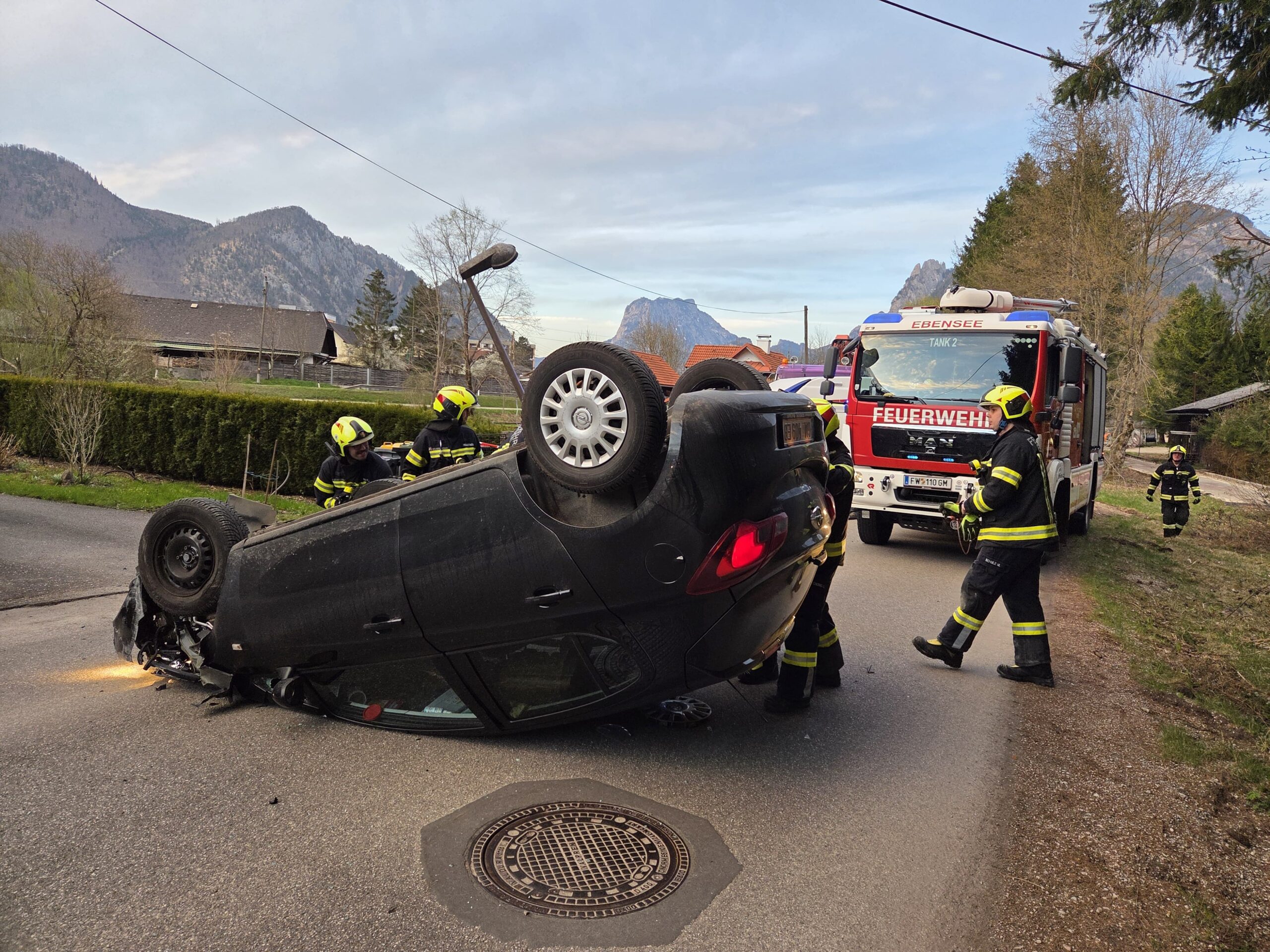 Vor Ort stellten die Einsatzkräfte fest, dass ein Fahrzeug aus bislang unbekannter Ursache von der Fahrbahn abgekommen war und sich überschlagen hatte. Das Fahrzeug kam schließlich auf dem Dach zum Liegen. Die Unfallstelle wurde abgesichert und ein entsprechender Brandschutz aufgebaut.